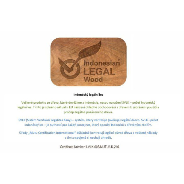 Teakové dřevo pochází z tropických lesů, je neobyčejně tvrdé, houževnaté a obsahuje přírodní oleje, které jej chrání před povětrnostními vlivy. Má tak výrazně vyšší životnost, než dřevo z evropských lesů a téměř bez údržby přežije i při umístění ve venkovním prostředí celou jednu generaci.
