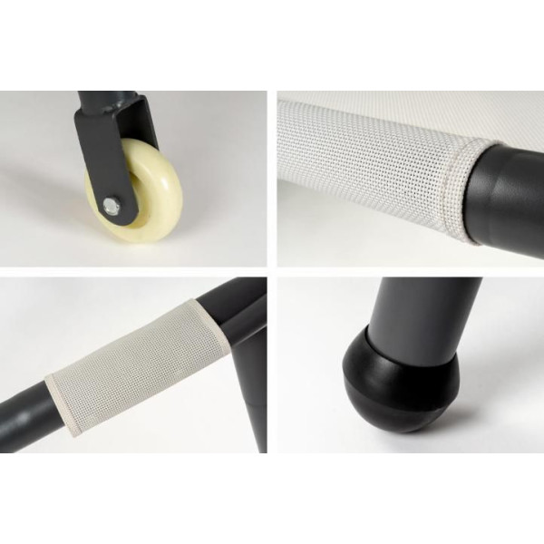 Ložná plocha je vyrobena z textilie 2x2 velmi odolné vůči roztržení. Textilie je dosti prodyšná, takže je lehátko pohodlné i v horkých letních dnech. Součástí ložné plochy je i pohodlný polštářek pod hlavu.