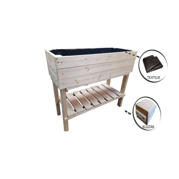 Velký truhlík na nohách / vyvýšený záhon pro zahradničení bez ohýbání, nebo klečení. Vyrobený z masivního dřeva (kombinace smrku a borovice). Rozměry 98,5x41x87 cm (délka x šířka x výška).