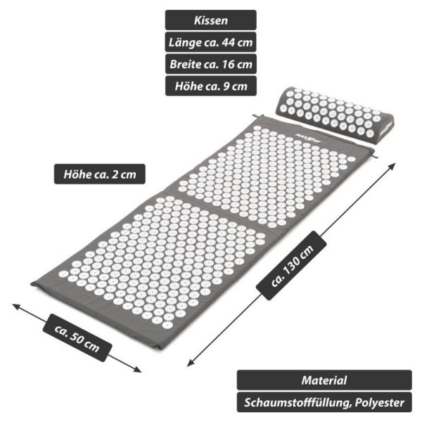 Podložka Yantra je srolovatelná, snadno skladná a vhodná pro přepravu. 414 jehlových polštářků rovnoměrně rozkládá váhu těla na podložce a báječný účinek této masážní podložky pocítíte během okamžiku. Akupresurní souprava MAXXIVA® je univerzální a lze ji použít na hrudník, břicho, krk, záda, nohy, lýtka, ruce a mnoho dalších oblastí. Podívejte se také na naše další fitness zboží, jako jsou činky, bradla, manžety na ruce, cvičební míče, podložky, balanční desky, steppery a mnoho dalšího.