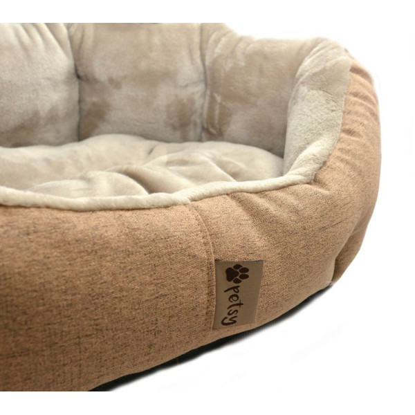 Kvalitní psí pelíšek ze 100% bavlny v kombinaci s nepromokavým dnem a výplní z dutého vlákna. Vnitřní strana pelíšku je vyrobena z extra měkkého fleecového materiálu. Kombinace hnědé a béžové barvy. Vnější rozměry 90x70 cm. Vyšší boky vyztužené malitanem.