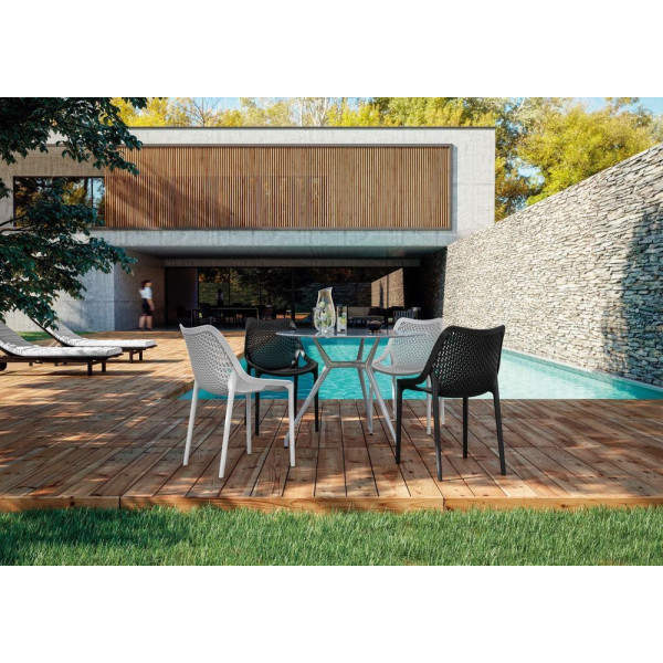 Moderní plastové křeslo s bytelnou konstrukcí a vysokou nosností 150 kg určené do venkovního i vnitřního prostředí. Designově přitažlivé provedení v šedé barvě s děravým výpletem a nižší opěrkou zad. Díky vysoké nosnosti a snadné údržbě je vhodné nejen do soukromých, ale i komerčních prostor- zahrady, terasy, restaurace, kavárny, pořádání akcí apod.