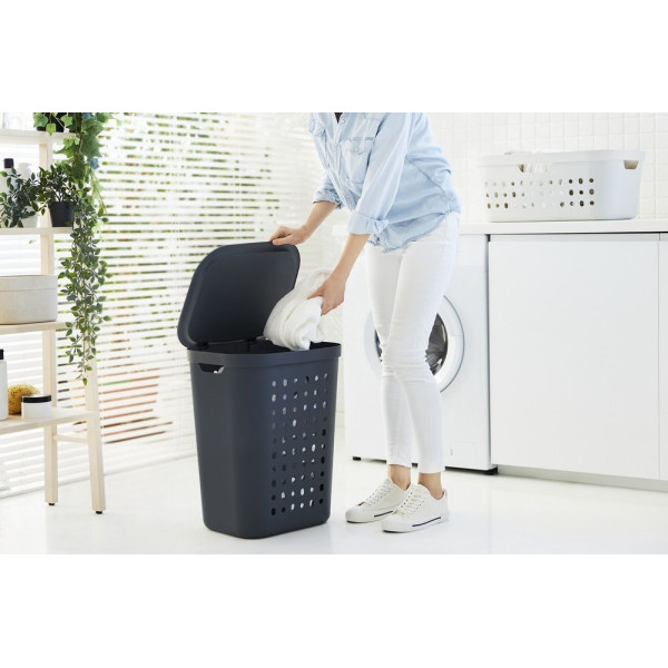 Plastový koš na špinavé prádlo vhodný především do koupelny, ale případně i do ložnice apod. Provedení v antracitové (tmavě šedé) barvě s víkem.