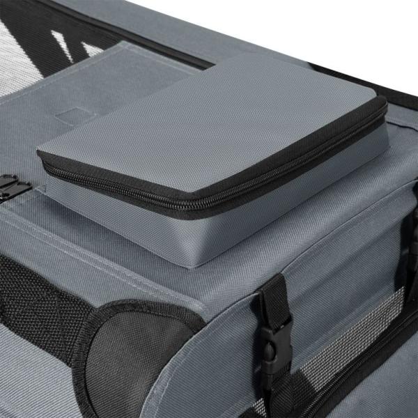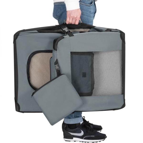 Praktická skládací cestovní bedna / taška o rozměrech 70×50×52 cm je praktickým řešením pro bezpečné a pohodlné cestování s Vaším zvířecím miláčkem. Je vhodná pro psy střední velikosti (typicky kokršpaněl, bígl, border kólie, knírač apd.). Kompaktní konstrukce umožňuje snadné umístění do auta nebo bytu.