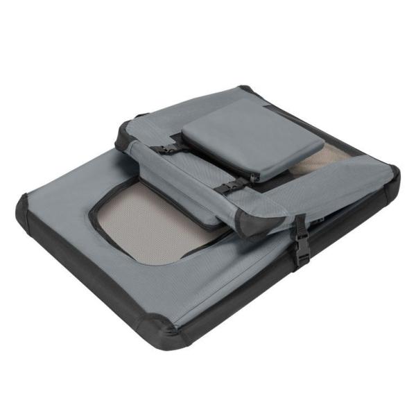 Součástí bedny je vyjímatelný pelíšek, který lze snadno vyprat a skládací miska na vodu nebo krmivo, kterou můžete využít během zastávek na cestách, ale i kdekoliv jinde. Součástí tašky je praktická kapsa na drobnosti jako je např. vodítko, obojek apod.