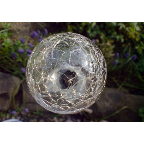 Velmi jednoduchá instalace – stačí zapíchnout do země. Skleněná koule obsahuje svítící LED diodu s barevnou změnou.