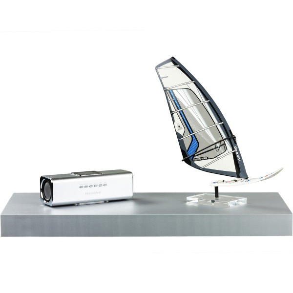 Moderní nástěnná polička stříbrné barvy o délce 70 cm. Skryté uchycení, díky kterému tato polička působí, jako by se na stěně vznášela.