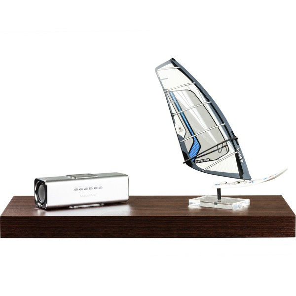 Moderní nástěnná polička v dekoru tmavého dřeva o délce 110 cm. Skryté uchycení, díky kterému tato polička působí, jako by se na stěně vznášela.