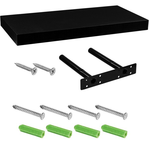 Moderní nástěnná polička černé barvy o délce 90 cm. Skryté uchycení, díky kterému tato polička působí, jako by se na stěně vznášela.